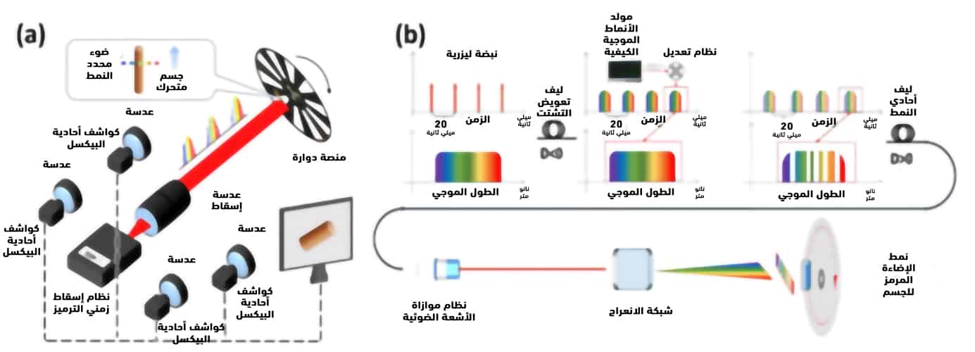 أما السؤال المتبقي الوحيد فهو ما هي السرعة الممكنة لإسقاط الأنماط على الجسم. وهنا تظهر أهمية التكنولوجيا الجديدة التي استخدمها الفريق والتي تعطي إضاءة بمعدل 50 ميجا هرتز. وهذا يعني أنه يمكن تشكيل كل صورة عن طريق معالجة الضوء من 100 نمط، ما يؤدي إلى معدل يساوي 500,000 لقطة في الثانية، ويستخدم الفريق عدة بيكسلات منفردة لبناء صورة ثلاثية الأبعاد.
