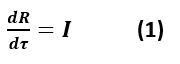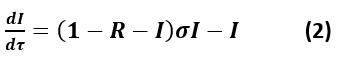 نرمز بـ T للفترة الزمنية التي يكون خلالها الشخص المصاب ناقلاً للعدوى (ويقدر الباحث في نموذجه أن هذه المدة تتراوح بين أسبوعين إلى أربعة أسابيع في حالة فيروس كورونا)، وt يرمز للزمن بالأيام، عندها يمكن تقديم المتغير τ=t/T، فتكون المعادلة التفاضلية التي تعبر عن تغير نسبة الأشخاص المتعافين هي: