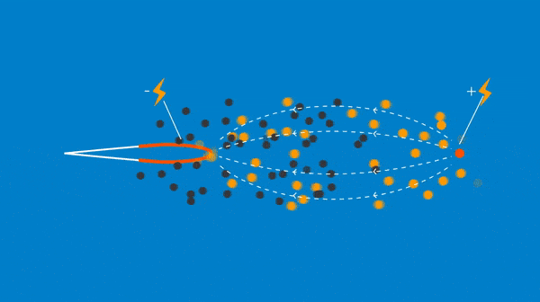 وباستخدام مستويات مرتفعة جداً من الجهد الكهربائي -الذي بلغ 40,000 فولط في حالة الطائرة- يولد الدافع أيونات في الهواء حول اثنين من الأقطاب الكهربائية، ليقوم الحقل الكهربائي المتولِّد بين هذين القطبين بقذف الأيونات من القطب الأصغر باتجاه القطب الأكبر، فتصطدم هذه الأيونات أثناء انتقالها بجزيئات الهواء الطبيعية، مما يشكل الرياح الأيونية ويدفع الطائرة إلى الأمام. بما أن الأيونات تتحرك بين قطبين كهربائيين ثابتين، فليس هناك حاجة إلى الأجزاء المتحركة لتشغيل الطائرة.