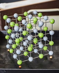 تُزيّن النماذج الجزيئية الملونة الزاهية جدارين من مكتب يات-مينغ تشانغ في جامعة إم آي تي. وقد قطع شيانغ (أستاذ علوم المواد ورائد الأعمال المدير لعدة مشاريع في قطاع البطاريات) شوطاً كبيراً من حياته المهنية في دراسة كيفية أن يؤدي الترتيب المختلف قليلاً لتلك العُصيات (الروابط الكيميائية والفيزيائية) والكرات (الذرات وما إلى ذلك) إلى نتائج مختلفة جذرياً في مجال تخزين الطاقة.