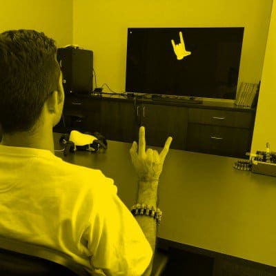ثم إن هناك الجهاز الذي يجري تصنيعه في شركة CTRL-labs، وهو عصابة للذراع يمكنها أن ترصد نشاط الألياف العضلية في الذراع، وأحد استخداماتها هو أن تكون بديلة لأجهزة التحكم في الألعاب، ومن الميزات الأخرى التي يجري العمل عليها هي إنشاء خوارزميات تستخدم البيانات لمعرفة ما تحاول يدك أن تكتبه، حتى لو قامت بحركة طفيفة.