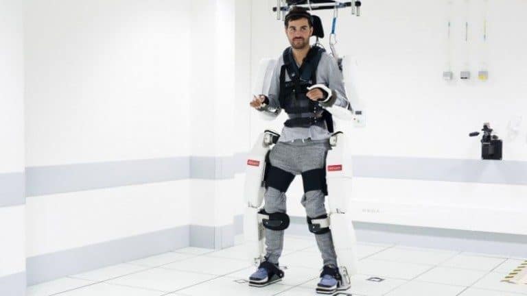 استعاد رجل مشلول قدرته على المشي بفضل بدلة هيكليّة خارجيّة يتحكم فيها عبر دماغه، كما أصبح قادراً على التحكم في ذراعيه ويديه باستخدام مستشعرَين آخرَين في دماغه أيضاً، وقد تمّت هذه التجربة بأمان داخل المُختبر. كان المريض أحد مواطني مدينة ليون يُدعى ثيبولت، وكان قد سَقَط من مسافة 12 متراً من شرفته قبل 4 سنوات؛ ممّا جعله مشلولاً من كتفيه وحتى أسفل جسمه.