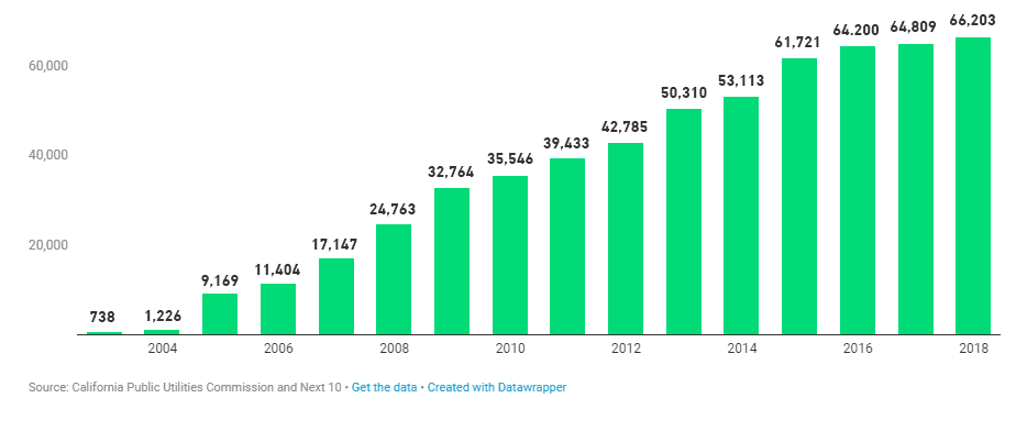 المصدر: شركة الخدمات العامة في كاليفورنيا ومنظمة نيكست 10 | تم بناء الشكل التوضيحي باستخدام داتا رابر