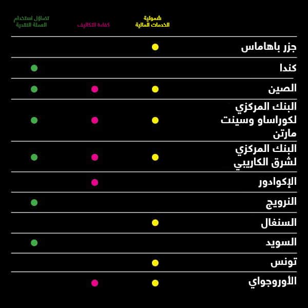 ووفقاً للتقرير، يوجد سببان رئيسيان لهذا التوجه؛ الأول هو أن الأنماط الجديدة من العملة الرقمية تؤدي إلى "تخفيض دور العملة النقدية"، بالإضافة إلى أن بعض البنوك المركزية مهتمة باستخدام هذه التكنولوجيا للوصول إلى مئات الملايين من الذين ليس لديهم حسابات مصرفية أو إمكانية للوصول إلى الخدمات المالية الحديثة، وأخيراً فإن معظم البنوك ترى إمكانية كبيرة لتخفيض النفقات عن طريق استخدام الأموال الرقمية بدلاً من الأموال الورقية. ويمكنك أن ترى في الجدول أدناه بعض الأسباب التي تدعو البنوك المركزية إلى الاهتمام بإصدار عملات رقمية.