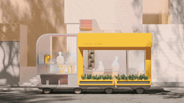 وقد ابتكر استوديو التصميم والمختبر التابع له مجموعةً من التصاميم للسيارات ذاتية القيادة، والتي تمثل امتدادات لمنازلنا ومكاتبنا ومؤسساتنا المحلية، وفي الواقع فإن بعضاً من هذه التصاميم السبعة -الموضَّحة في نهاية المقال- تكاد تكون عملية؛ إذ ليس من الصعب أن نتخيل مقاهي ذاتية القيادة، أو متاجر مؤقَّتة متنقلة بشكل آلي، وفي الواقع يمكن أن نعتبر أن هذه المتاجر موجودة في كاليفورنيا على شكل سيارات ذاتية القيادة تحمل البقالة في مقاعدها الخلفية.